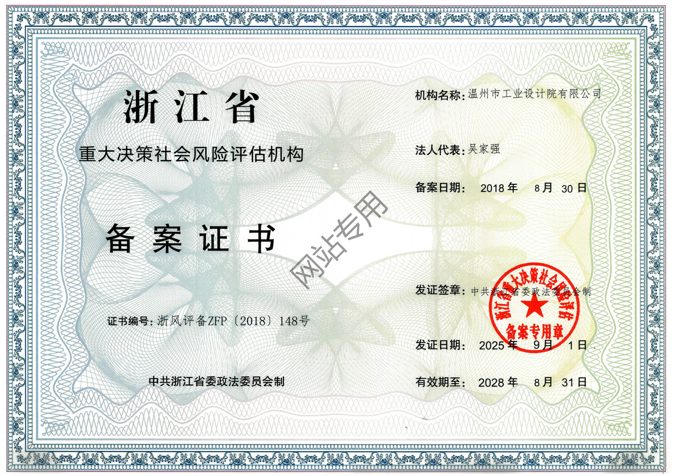 浙江省社會穩(wěn)定風險評估機構(gòu)備案證書
