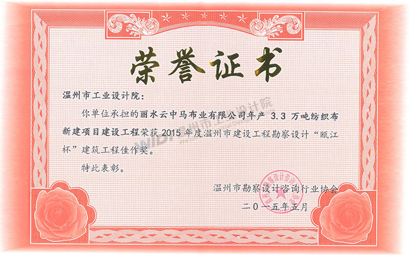麗水云中馬布業(yè)有限公司年產(chǎn)3.3萬噸紡織布新建項(xiàng)目建設(shè)工程 甌江杯建筑工程佳作獎(jiǎng)