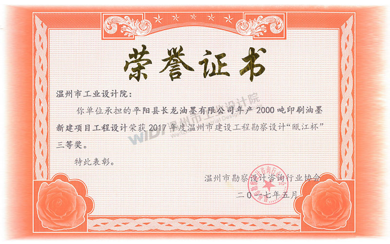 平陽縣長(zhǎng)龍油墨有限公司年產(chǎn)2000噸印刷油墨新建項(xiàng)目工程設(shè)計(jì) 甌江杯三等獎(jiǎng)