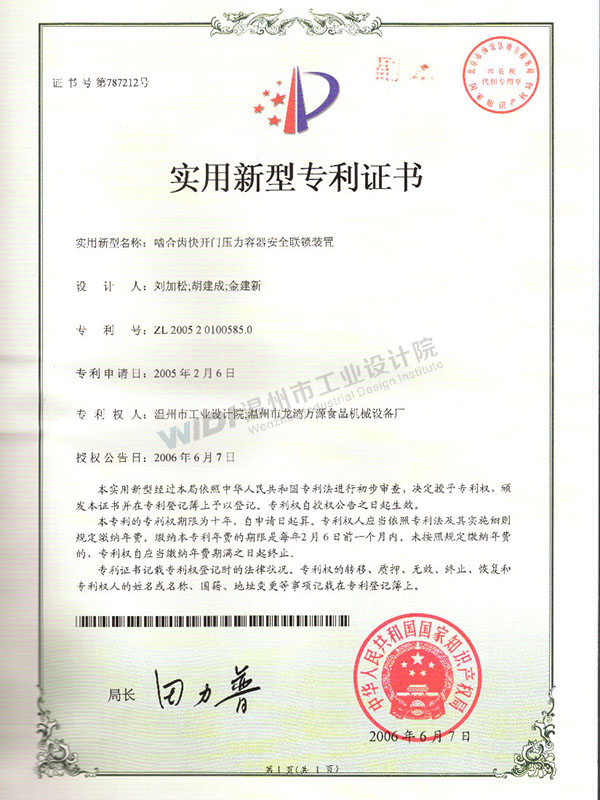 實用新型專利證書1